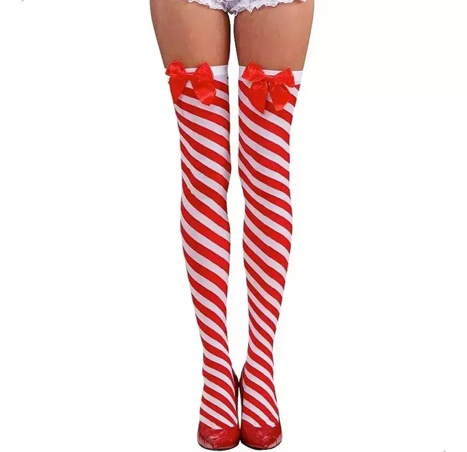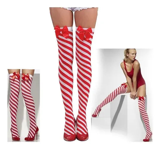 Medias Bucaneras Candy 7/8 Rayadas Blanca Y Roja Con Moño