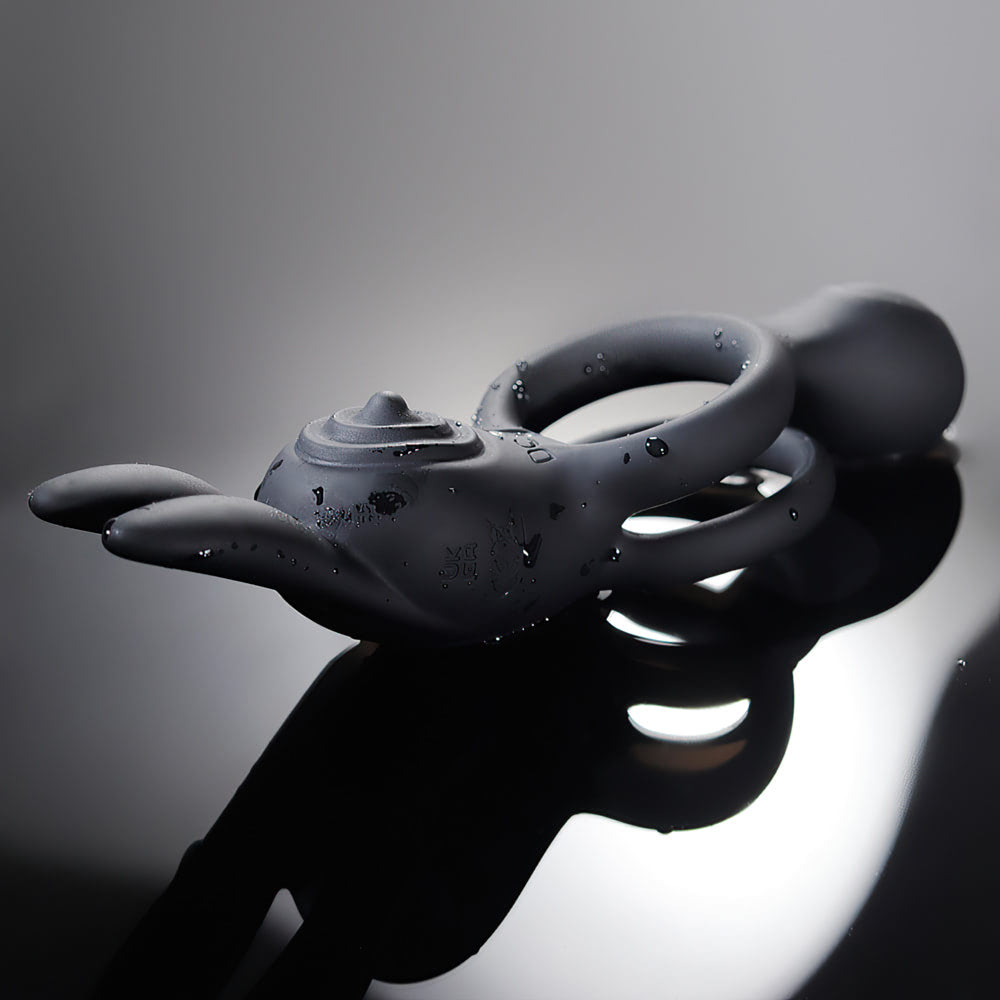 Este anillo vibrador combina estimulación clitoriana a través de sus orejas de conejo vibradoras y masaje testicular con su vibración inferior, intensificando el disfrute en cada movimiento.