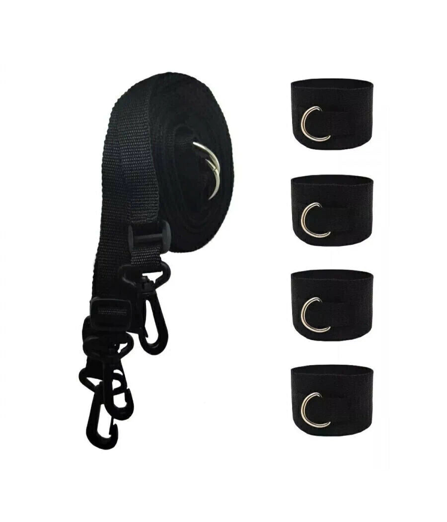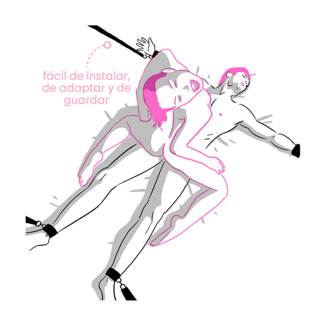 Amarre de cama para tobillos y muñecas completamente regulables tanto las esposas como las tobilleras y el largo del mismo amarre. Deja que tu imaginación vuele con este kit para amarrar a tu pareja a la cama